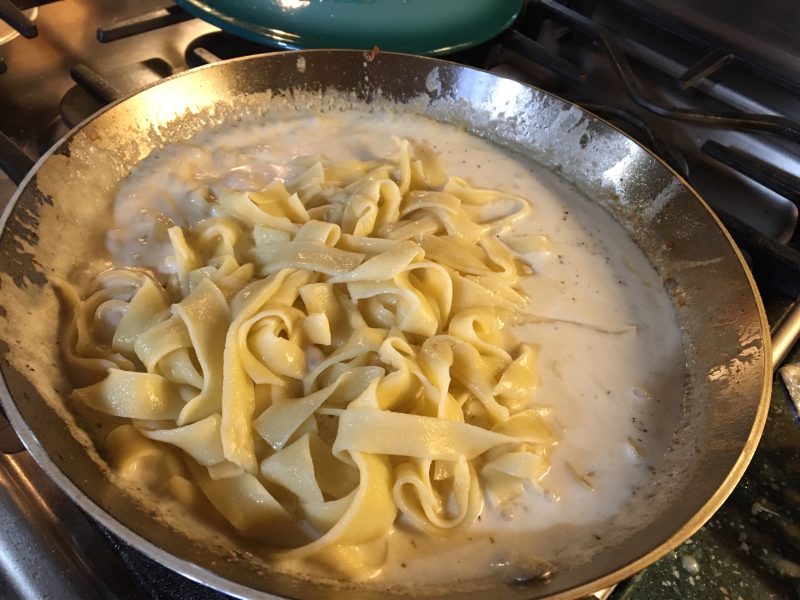 Homemade pasta and parmesan cream sauce. ARE YOU KIDDING ME?? This was perfect. Maybe I’ll try a bit of something to spice it up a bit, or maybe lemon juice? Nutmeg? I’m not sure, but we are having it again tomorrow. Why try to think of something else to make out of the chicken we still have marinading in the milk and lemon, and the remaining pasta when this is so good. It’s been decided. Tomorrow it will be a repeat!