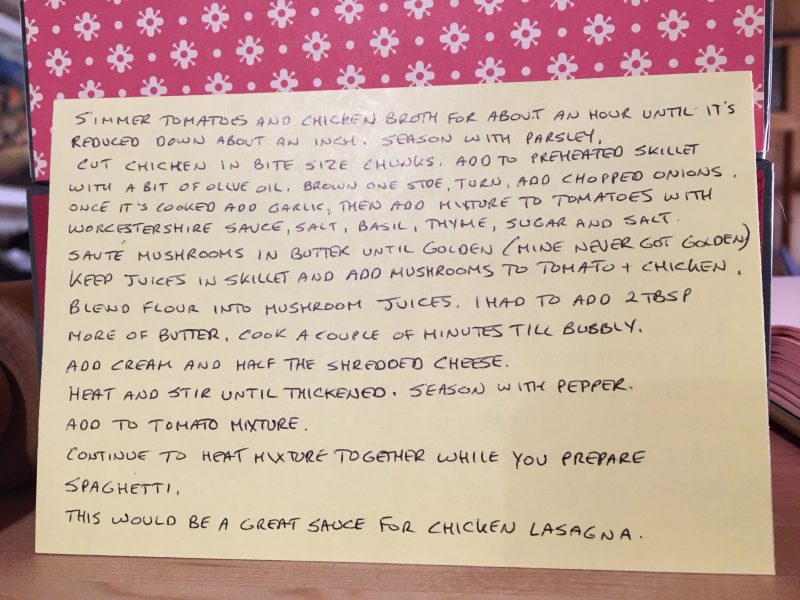 I can’t even begin to describe how good this sauce is. It’s creamy, and elegant, and I’m sure would be wonderful on spaghetti, which we will try tomorrow and likely even better made into chicken lasagna, which I will certainly do as well. It’s company worthy!! For now into the fridge it goes to build even more flavour overnight!