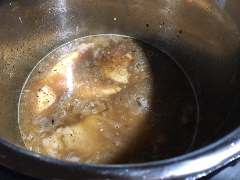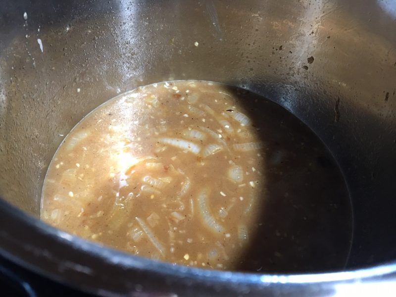 Add back onions, add broth (about 2 -3 inches in 8 quart IP, I should have measured, it was likely 3 cups) with 2 heaping spoonfuls of ‘better than beef boullion’