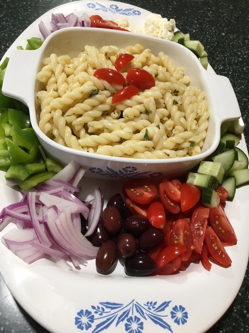 A great display so people can pick there own makings.. but it’s WAY better adding feta cheese to the dressing, letting it sit, then putting the salad all together and letting it sit in the fridge, likely even better overnight!! Mix well before serving.