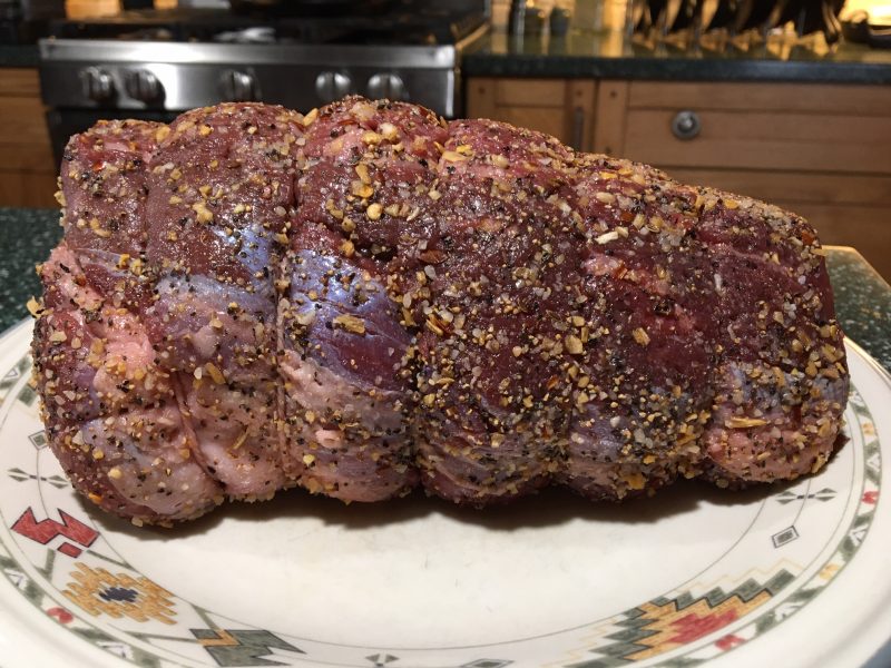 I did something different this time too. I used meat tenderizer power (no msg) and added to all sides of meat. Then I put on a good coating of the KEG’s steak spice. Oh yeah!!!! FANTASTIC. Make sure you get all ends and sides. I just had it on parchment paper while I spiced it up then rolled it around on the parchment paper to get all the spices on there.
