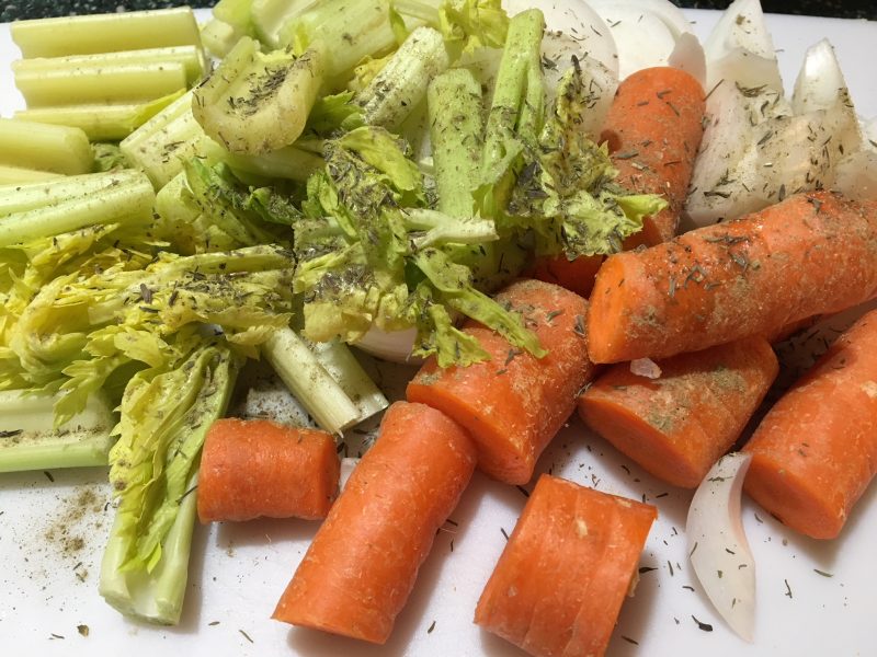 Celery stalks plus leafy parts cut into 3-inch lengths