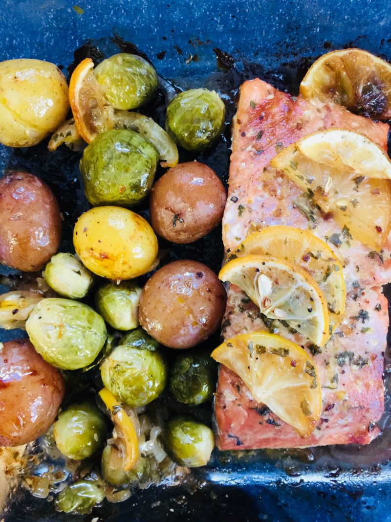 Cut the salmon fillet into pieces of comparable size, as per the number of servings required. Put them on an oiled baking sheet and brush them with oil.